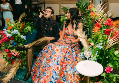 The festivities kicked off on a balmy Friday evening of August 18th, 2023, at the enchanting Marigold venue. A riot of colors and an aura of festivity enveloped the space as guests arrived to partake in the joyous Sangeet ceremony. The air was filled with laughter and music, setting the tone for a night of jubilation.