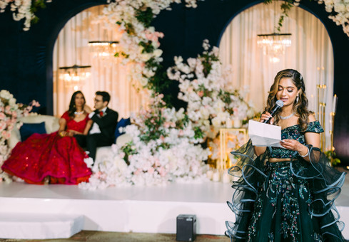The evening was aglow with the warmth of love and celebration as guests gathered for the cocktail hour, basking in the newlyweds' happiness and radiance. Amulya and Tushar moved graciously amongst their loved ones, sharing laughter and creating memories that would last a lifetime.